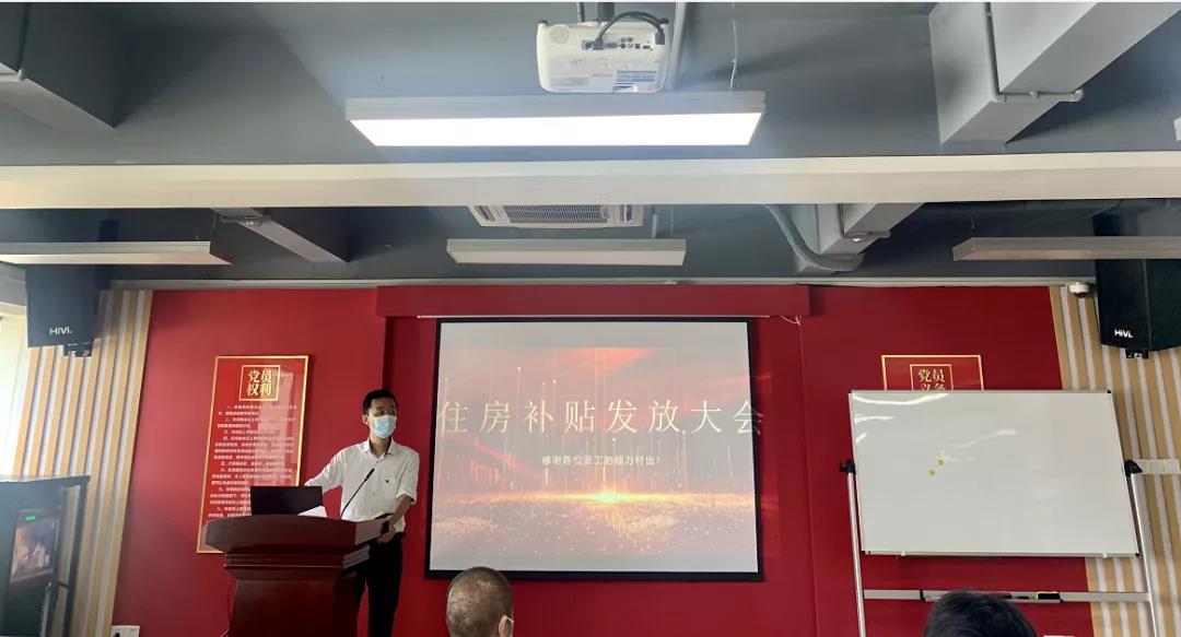 集团自发布员工福利政策以来,通过各项指标核对,在全体员工的见证下,于今日发放第一批员工住房补贴,共计发放184万元。领取员工依次上台并分享自己的感受,讲述他们在公司创立初期与公司一起走过的艰辛不易,他们在公司实现了自己的价值,同时鼓励所有同事珍惜眼下舒适的办公环境和公司公平公正的平台,努力实现自身价值,不断学习不断进步。